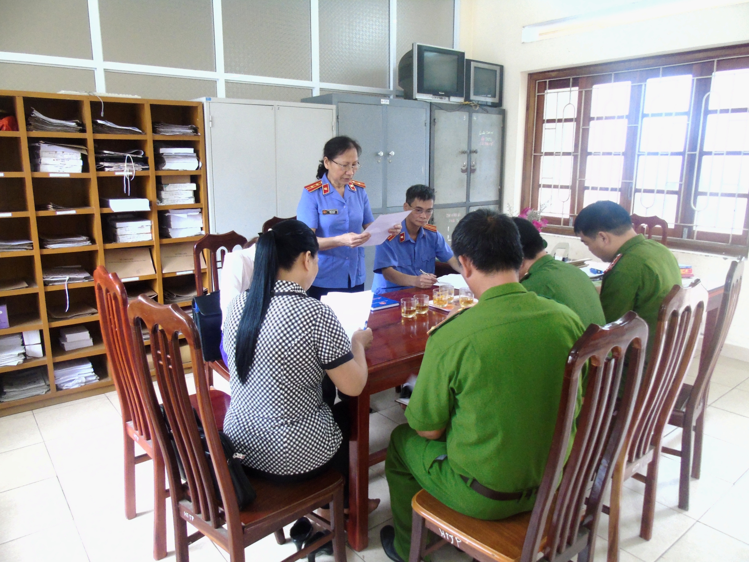 Đồng chí Trần Thị Mai - Phó Viện trưởng Viện kiểm sát nhân dân huyện thay mặt đoàn trực tiếp kiểm sát đã thông qua quyết định và kế hoạch kiểm sát Nhà tạm giữ trong 6 tháng đầu năm 2016, thời điểm kiểm sát từ ngày 01/12/2015 đến ngày 20/5/2016. Tại buổi làm việc, đồng chí Nguyễn Phi Phượng - Phó Trưởng Công an, Trưởng Nhà tạm giữ Công an huyện đã báo cáo kết quả công tác của Nhà tạm giữ theo các nội dung yêu cầu.