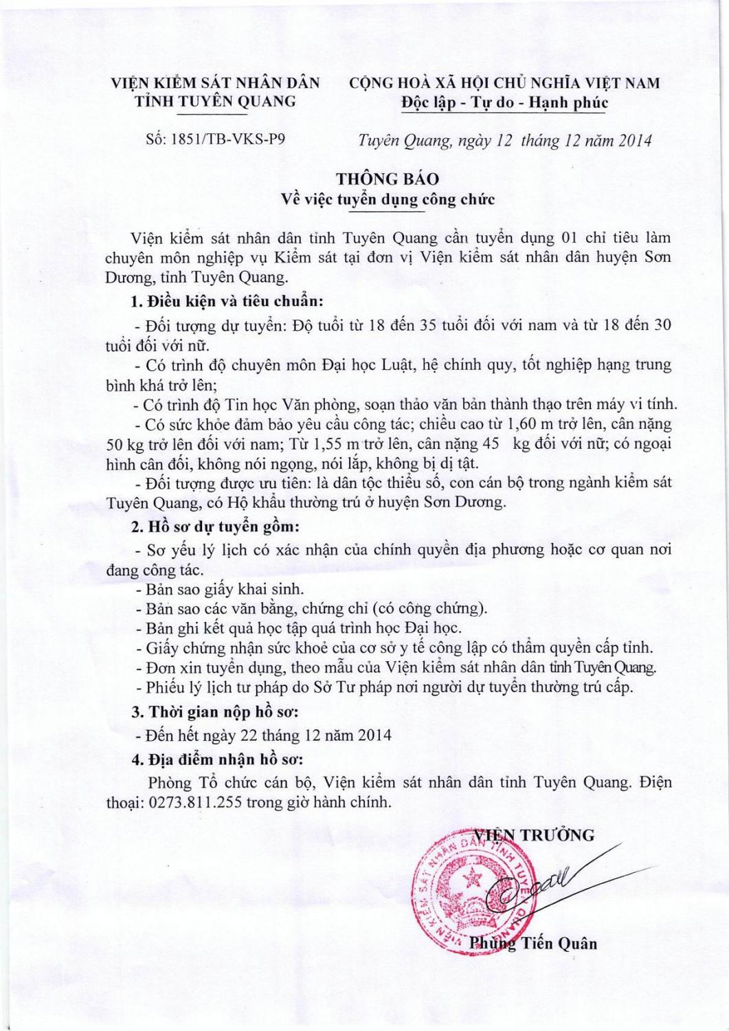 Thông báo về việc tuyển dụng công chức