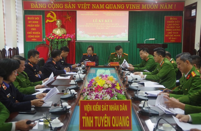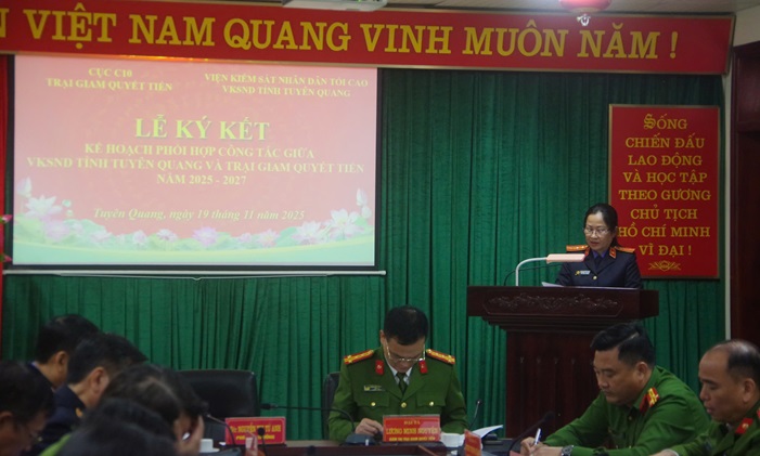 Ngày 19/11/2025, Viện kiểm sát nhân dân tỉnh Tuyên Quang chủ trì phối hợp với Trại giam Quyết Tiến tổ chức Lễ ký kết Kế hoạch phối hợp công tác trong thực hiện chức năng, nhiệm vụ của hai đơn vị.