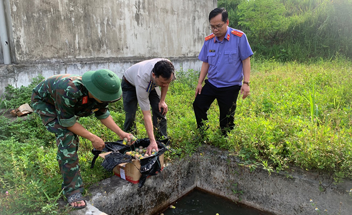Tại địa điểm tiêu hủy, Kiểm sát viên cùng Hội đồng tiêu hủy vật chứng đã đối chiếu, kiểm tra kỹ tình trạng niêm phong vật chứng, đảm bảo đúng số lượng, chủng loại được thể hiện trong Bản án và quyết định chuyển giao vật chứng, Kiểm sát viên kiểm sát việc mở niêm phong và đưa ra tiêu hủy bằng phương pháp sử dụng nước để ngâm làm mất tính năng sử dụng của vật chứng (pháo).